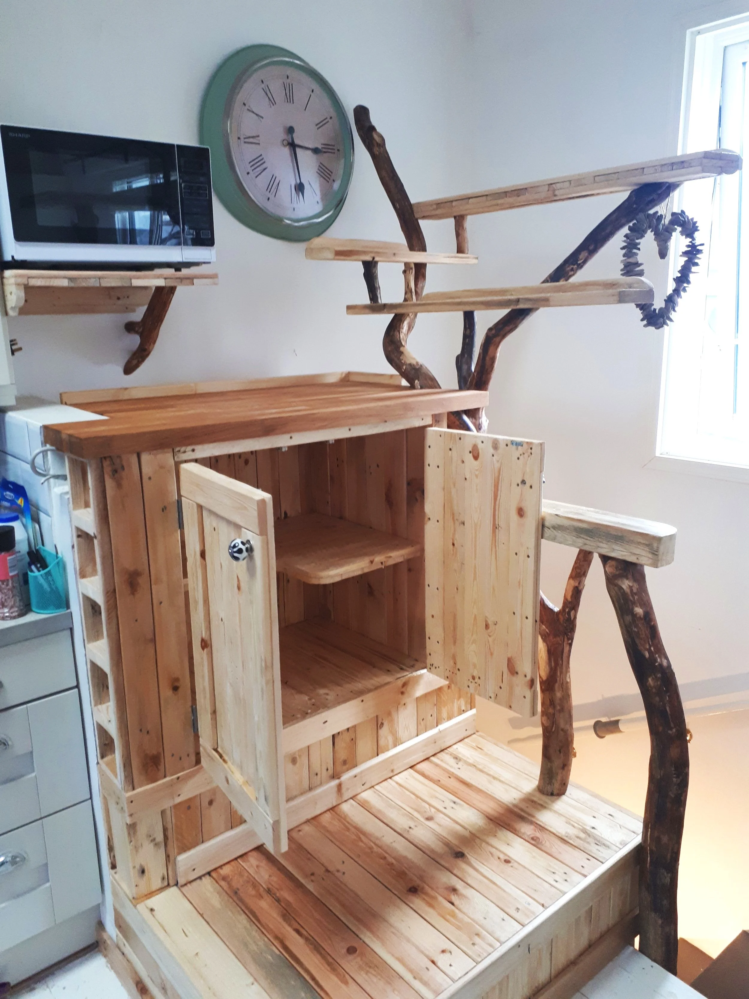 THESE UNITS WERE CREATED FOR A FRIEND ,OR SHOULD I SAY FOR FRIENDS. A COUPLE WHO WHOLE-HEARTEDLY PLACED THEIR TRUST IN OUR HANDS TO CREATE FOR THEM THESE UNITS USING WOOD FOUND WITHIN A KILOMETRE OF THEIR HOME . WOOD WHICH WE SOURCED FROM PALLETS FROM THE LOCAL HARBOUR AND NATURAL DEAD WOOD FROM THE LOCAL FOREST , THATS IT ! THE PERFECT COMBINATION OF CURVES , STRAIGHT LINES COLOURS AND TEXTURES TO LEAVE THEIR HOME WITH A SUPER ECO FRIENDLY KITCHEN …..